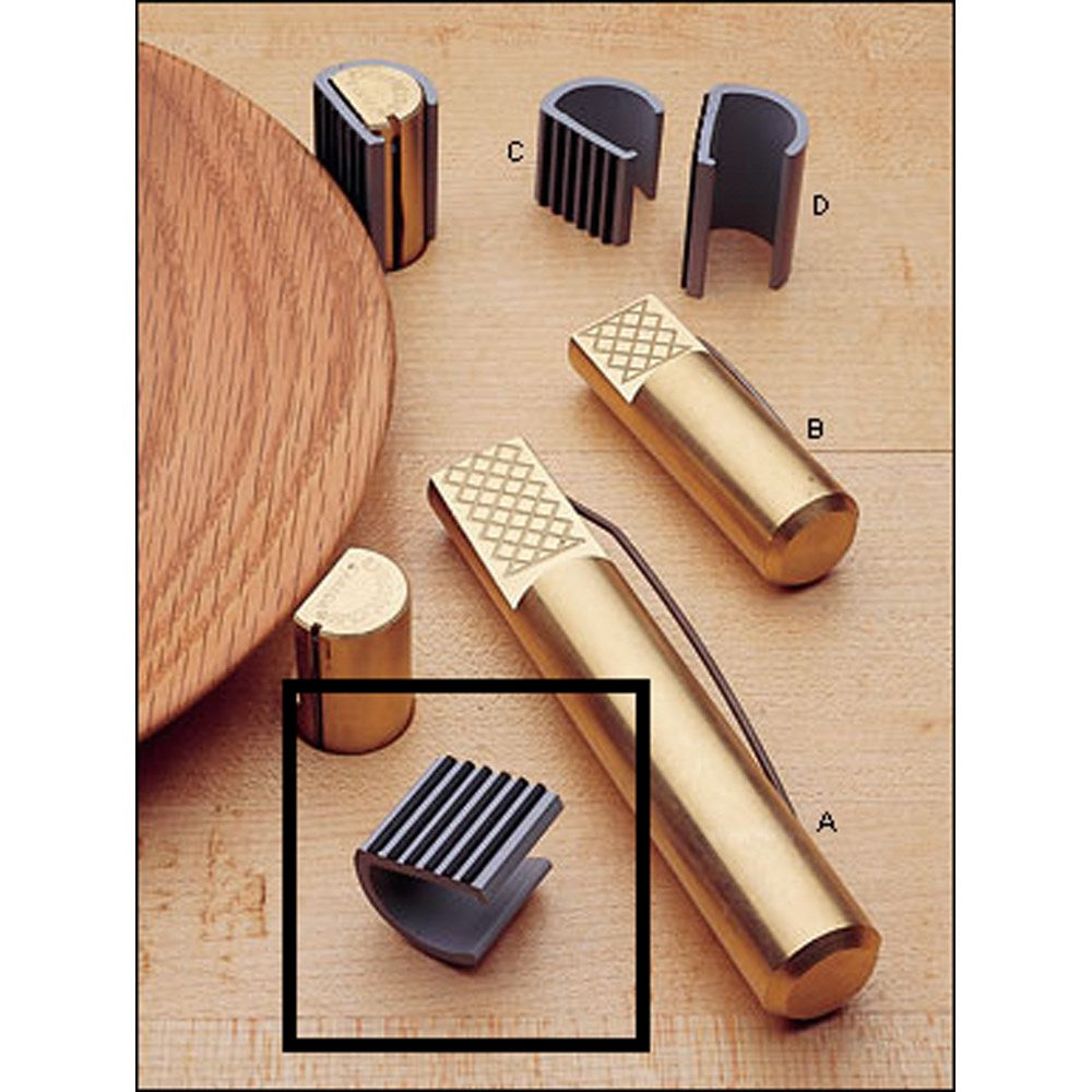 For clamping a finished piece without marking it, our slip-resistant muzzles slide over our bench dogs (or Bench Pups) to give you a non-marring surface. They have a hard, spring-grip, plastic body with six face ribs.