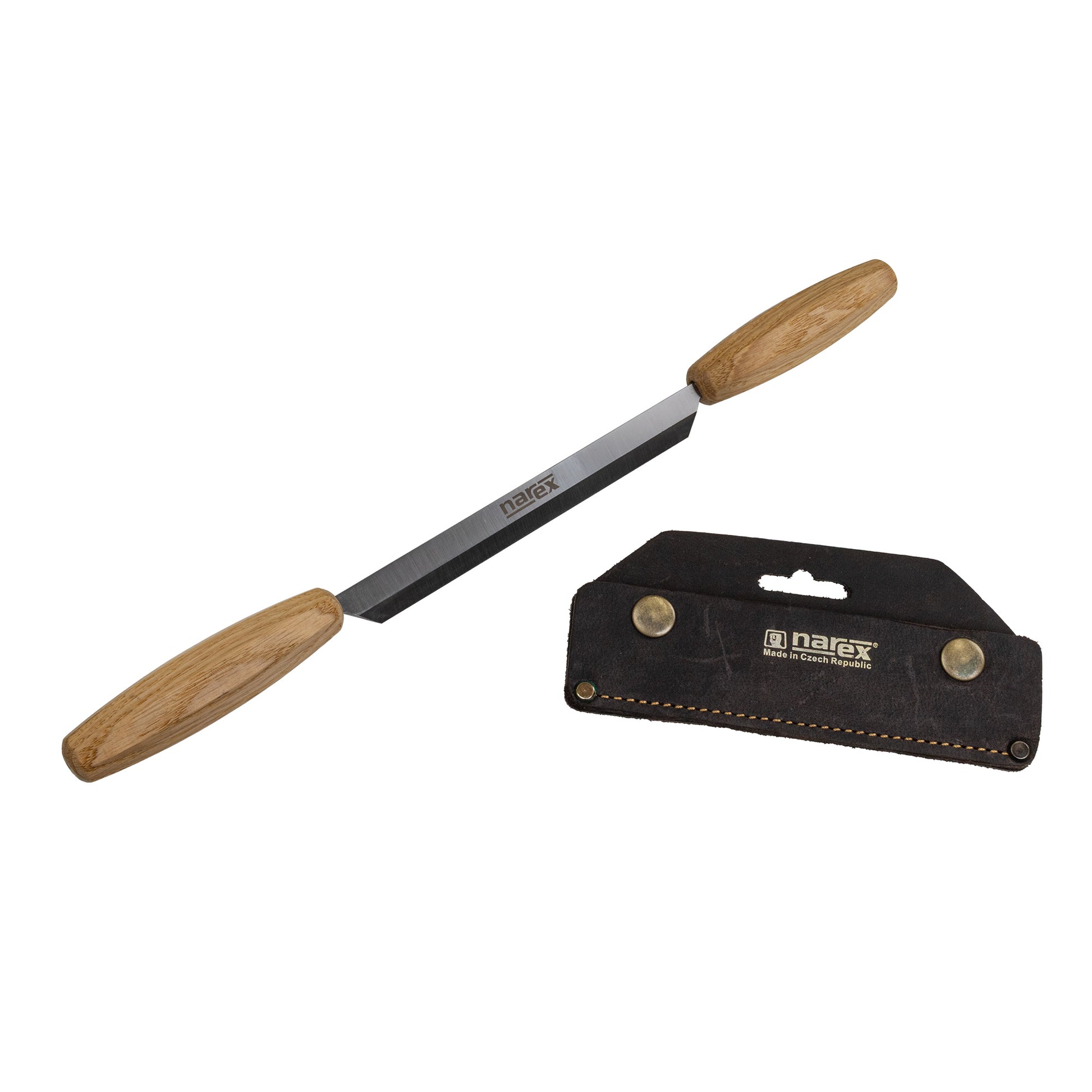 A drawknife is a traditional woodworking tool used for shaping wood by removing shavings. The Narex Carving Drawknife consists of a blade with two handles at either end, and is best used to carve or shave wood into a smooth, even surface. To correctly use this tool you will hold the handles and draw the blade toward yourself (hence the name "drawknife"), making long, controlled cuts along the grain of the wood. The straight carving drawknife is best used for pulling and pushing, it can also be used for shaping wood, planing or carving large areas.
