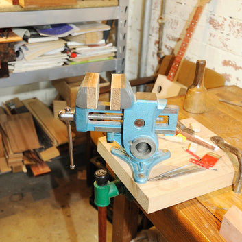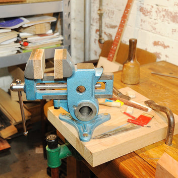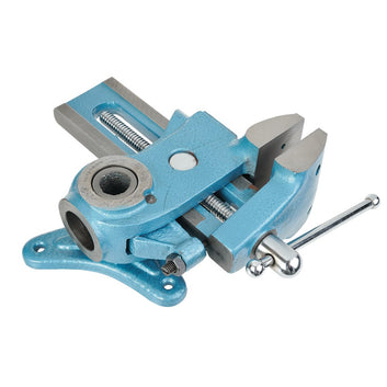 The Parrot Vise incorporates a unique tightening cam that lets it pivot freely through 360 degrees until you tighten the jaws firmly; locking the vise in place. This allows you to back off the clamp screw just enough to rotate the vise for access to any part of a workpiece without releasing it from the jaws. Additionally; the vise can be lifted from its heavy pivot post and reinstalled horizontally (either side up); maintaining the same pivoting and locking functions. 89 mm wide cast iron jaws open to 120 mm. Weight: 4kgs.