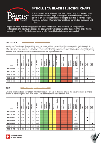 Pgas blades are manufactured in Vallorbe, Switzerland from the best available carbon steels. The teeth are perfectly and equally set (right and left), enabling straight cuts without having to compensate for deviation. They are heat treated after machining, which is the only method that guarantees both toughness and optimum flexibility.With a large range available, we believe they are the unequaled in quality and represent the best blades on the market. Routinely outperforming and outlasting the competition in independant testing and all at exceptional price points! Professionals and hobbyists alike will appreciate what Pgas blades offer you.Make your scroll saw really perform with Pgas blades.
