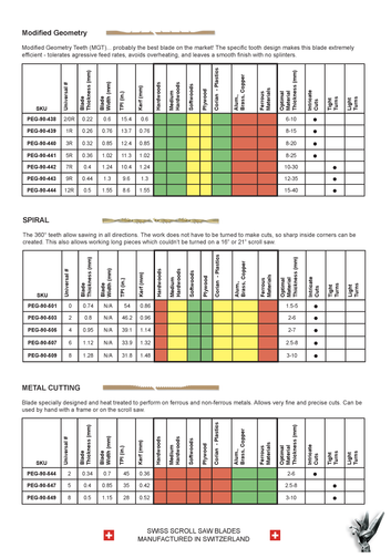 Pegas Super-Skip saw blades achieve a smooth finish from an aggressive tooth design. These blades are specially designed for medium and hard woods but also work perfectly on Acrylic at a reduced speed. The spaces between the teeth of the Super-Skip blade are wider than a typical skip-tooth configuration, enabling the blade to cut very quickly, leaving a smooth finish. The surface sawdust is whisked away, and the edge remains clean.Pack of 12