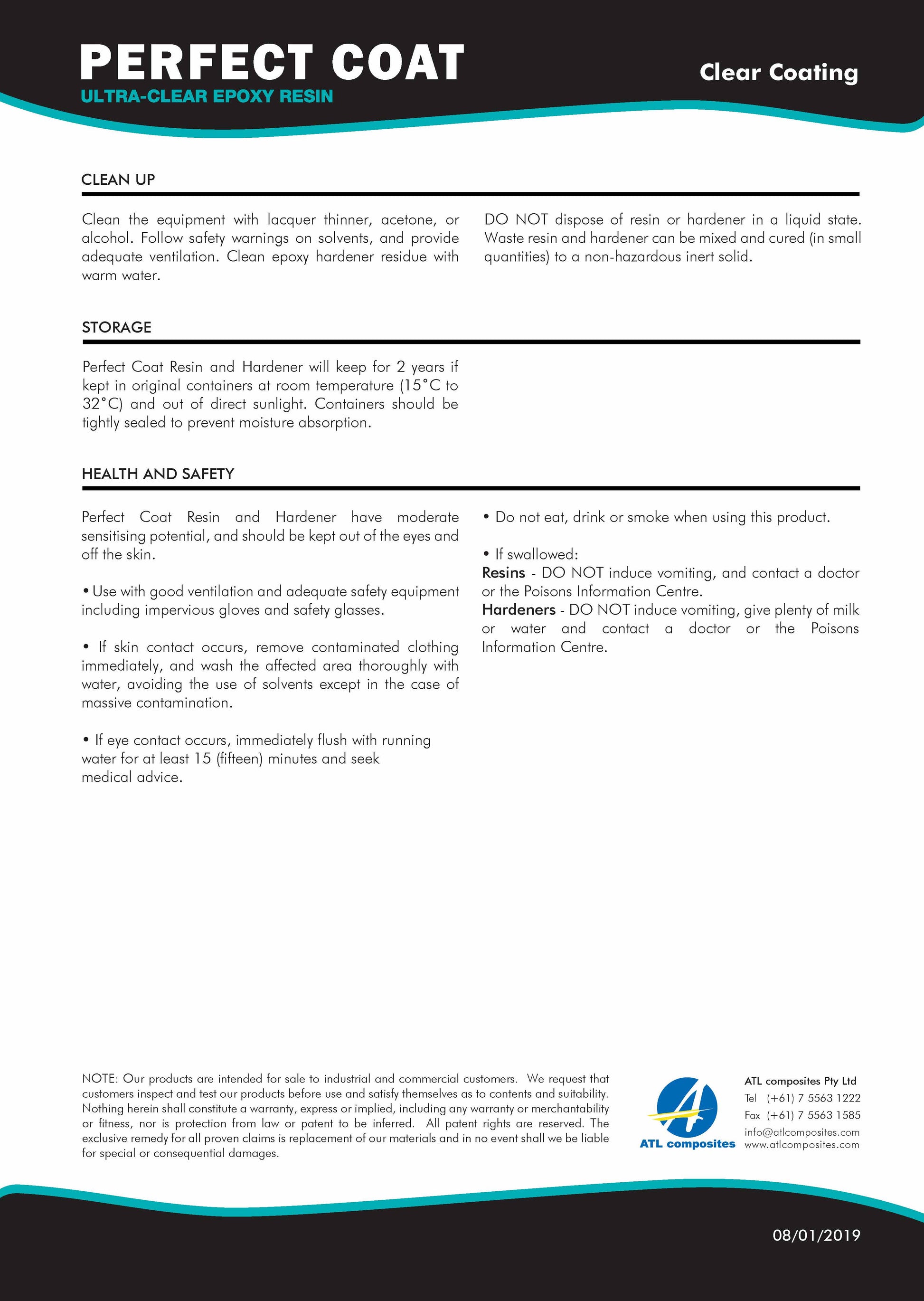 Perfect Coat is a solvent free, liquid epoxy resin specifically designed as a crystal clear, high-gloss coating system for timber coating that will self-level, and cure at room temperature.Kit contains 500ml of Resin and 500ml of HardenerMixing resins by weight is a lot more accurate than by trying to mix it by volume. This is done using digital scales; place a clean mixing container onto the scales and zero it. Pour in the required amount of part 1, take the weight and multiply by 0.88. Zero the scales and pour in part 2 COATING 1:1 by volume / 1:0.88 by weight