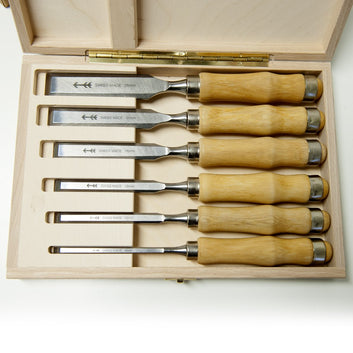 Heirloom quality bevel edge chisels in an attractive beechwood case. Design features include: Ergonomic beech handles with steel hoops; Finely polished and honed edges for razor sharpness right out of the box; Durable chrome vanadium steel; 25 degrees bevel. Sizes included:6; 10; 12; 16; 20 and 26mm.