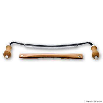Overall length: 430mm Cutting edge length: 240mm Blade width: 25mm Drawshave has cherry handles and is supplied in a Goatskin case.