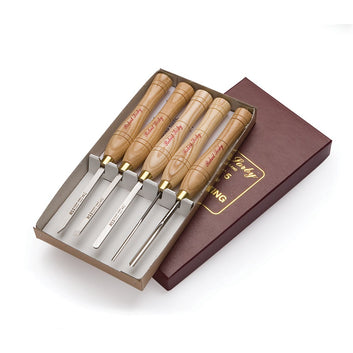 These tools are best suited as a spindle turning set. They are ideal for miniature projects including dolls house furniture, lidded boxes and other small objects. Supplied is a box for presentation and storage.