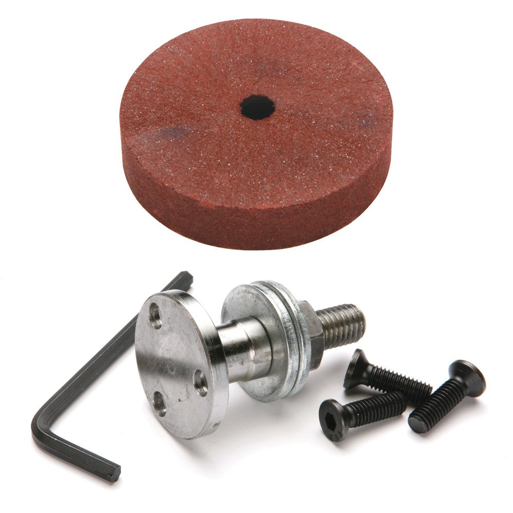 This Robert Sorby Proedge honing kit has an abrasive wheel, which is ideal for carving tools. It can be shaped to suit various profiles.