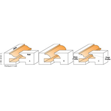CMT rail and stile sets are a perfect pair. Made to match exactly; not approximately like standard reversible cutters. Create smooth; perfect joints in hard and soft woods with accuracy and speed. Perfect for stock thickness from 18 to 22mm.Example B of A, B and C