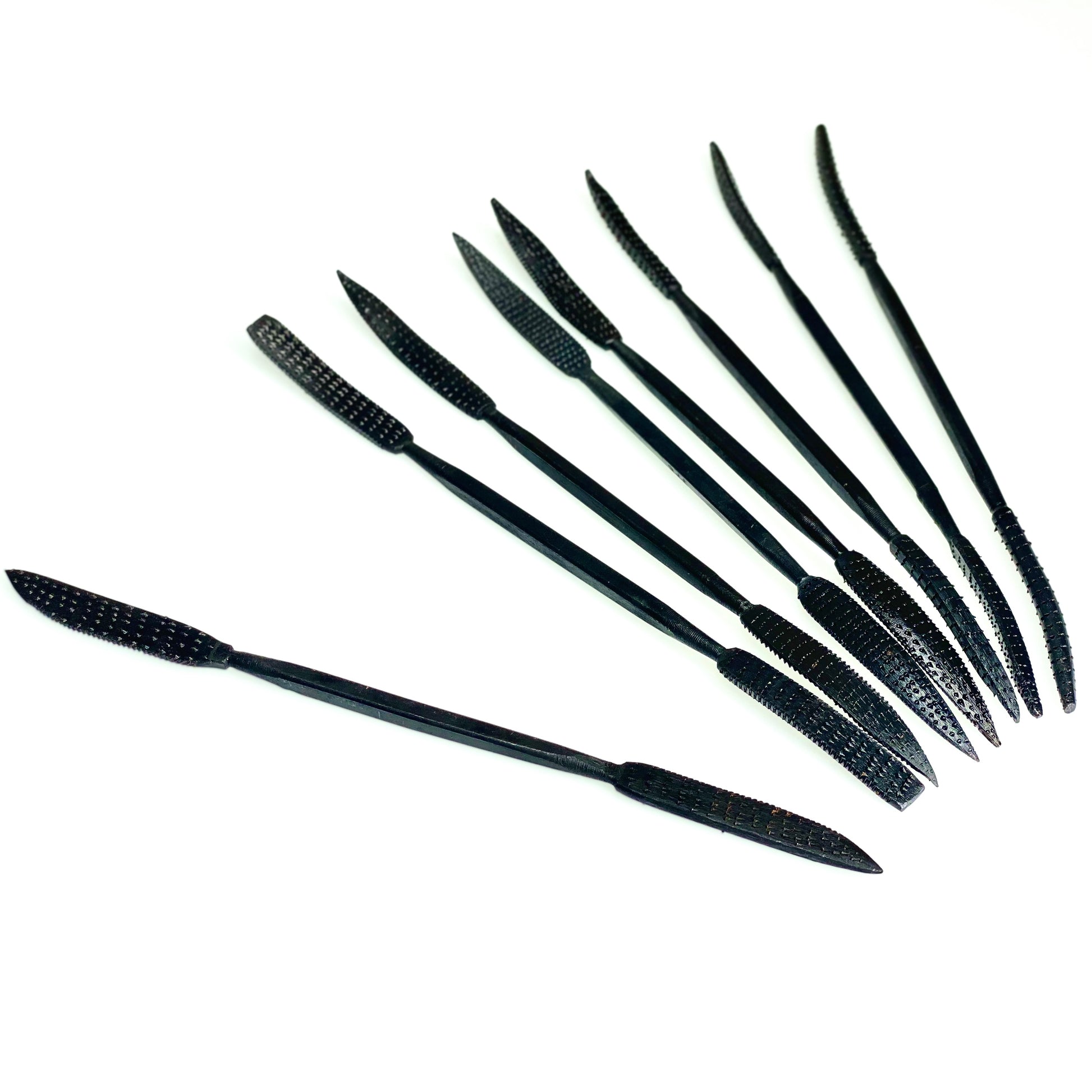 An economical solution to carving and sanding complex shapes, internal and external curves, and in tight corners. The Carbatec 8pce Riffler Rasp set features 8 double ended, hand picked (random pattern) rasps, with various shapes, angles, curves and points.