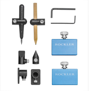 Rocklers 3-in-1 Bar Gauge is not a new tool, in fact has been used for centuries. It does not use Metric or Imperial measurements, rather tells the user is something is square, or if something is going to fit. Whether checking diagonal measurements for square using the Angled Wedge Tips, or transferring measurements using the Flat Tips or simply scribing arcs using the Set of beam compass tips, this tool is so simply to use and set up using 3/8 rod or dowel. Included:2 Bar gauge assemblies1 Set of beam compass tips2 Flat tips for transferring dimensions2 Angled wedge tips for checking diagonals2 Hex wrenches