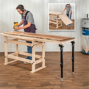 Space allowing, we'd all love a long bench with ample space not only for your project, but also for setting tools down in the midst of a complicated project. In most shops, though, space is limited. That's where Rockler Folding Top Extension Kit comes in handy. Build your bench or worktable in a compact size and pull up the extension only when you need it.