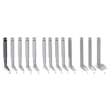 Veritas has identified a need for a range of blades from as narrow as 1/16" through to 1/4", in both Imperial and Metric measurements. An additional straight and spear point blade at 1/2" and a two piece straight blade at 3/4" are available for those larger and wider rebates and trenches.