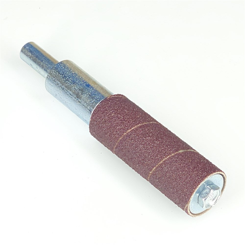 A 1" Diameter Sanding spindle with sleeve. Suitible for mounting in power drill, drill press or a chuck in a wood lathe.