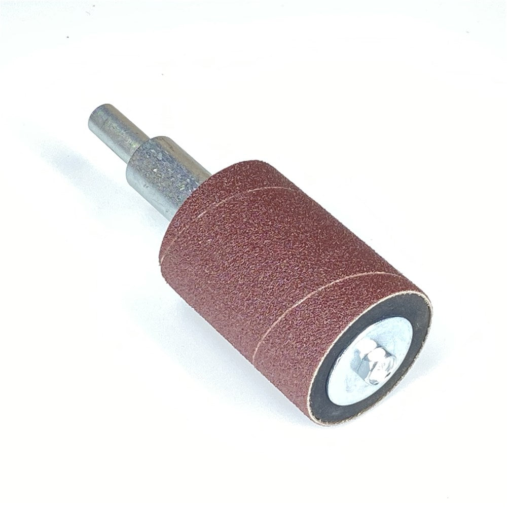 A 2" Diameter Sanding spindle with sleeve. Suitible for mounting in power drill, drill press or a chuck in a wood lathe.