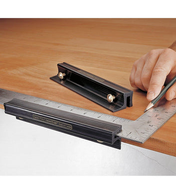 A carpenter's square is frequently needed just because of its size. The key disadvantage of such a square (its lack of a supporting fence ledge) can now be eliminated using a Veritas square fence.