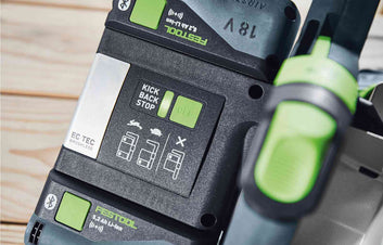The kickback is the most common cause of serious injuries when using a plunge-cut saw. Our unique kickback stop stops the saw blade in the blink of an eye, not only protecting your workpiece but also minimising the risk of injury to your hands. Our new generation of saw blades and the concentrated torque of our cordless plunge-cut saws allow users to make powerful, precise cuts at up to twice the speed with an extended battery range for maximum cutting performance and perfect cutting quality. Variable speed control and angle settings allow for delicate working adapted to the material and precision undercuts. Note: This is a basic kit and does not include Batteries or Chargers