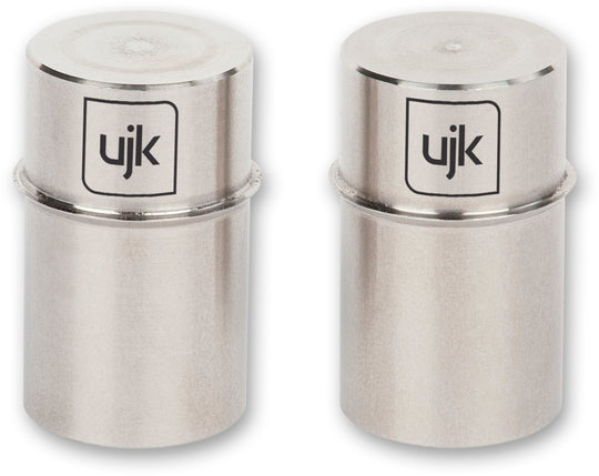 Supplied as a pair, these UJK Guide Dogs fit exactly into the 20mm holes of the UJK multifunction workbench. They are compatible with the Festool MFT/3 tabletop and similar grid tables with chamfered 20mm holes.CNC machined from 303-grade stainless steel, the Guide Dog has a 12mm projection above the tabletop. The lower profile makes the Dogs ideal for situations where a taller dog would cause an obstruction. At 20mm diameter, it is fully compatible with many other multifunction bench accessories.The stop collar fits into a chamfer around the dog hole, providing a register that guarantees the dog sits perpendicular to the work surface and ensures a flush fit at the base. A UJK Chamfer Cutter is available to modify tables with plain holes, or you can use a router with a bevel cutter to create a slight chamfer. When used in pairs the precision fit of the Dog is perfect for fixing other items or jigs with corresponding 20mm holes.