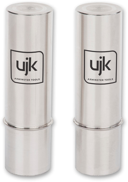 Supplied as a pair, these stainless steel UJK 50mm Guide Dogs fit exactly into the 20mm holes of the UJK multifunction workbench. They are compatible with the Festool MFT/3 tabletop and similar grid tables with chamfered 20mm holes.CNC machined from 303-grade stainless steel, as the name implies the Guide Dog projects 50mm above the surface. At 20mm diameter, these are ideal for use with guide rails or used as additional stops in conjunction with Super Dogs. These 50mm Guide Dogs are fully compatible with many UJK Multifunction Bench accessories.The Dogs have a machined stop collar, which prevents them falling through the table. This stop collar fits into a chamfer around the dog hole and provides a register, guaranteeing the dog sits perpendicular to the work surface and ensures a flush fit at the base. A UJK Chamfer Cutter is available to modify tables with plain holes, or you can use a router with a bevel cutter to create a slight chamfer. When used in pairs the precision fit of the Guide Dog is perfect for fixing other items or jigs with corresponding 20mm holes.