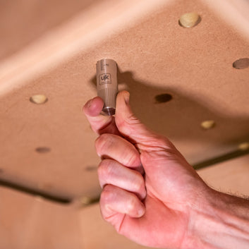 These unique stainless steel UJK dogs feature a Tee-bolt that fits into the Tee-slot on the underside of your Festool guide rail. Unlike the standard dogs that are referenced against the side of the rail, these dogs are hidden beneath your rail. They replace the need to rely on rail clips to keep the rail in position. Once located in the dog holes in your multifunction bench, your guide rail is going nowhere. Using these dogs, there is never any chance of your saw cutting across other dog holes. This method of fixing your guide rail is particularly beneficial when using power tools with higher vibration levels, such as routers. They are supplied with two aluminium split collars which fit over the dog. If the workpiece you are cutting is narrow, the rail can rock. These collars support the rail to stop this rocking. The dogs have a metric scale 75mm along the side. This scale is used to measure the thickness of wood and then set the collar on the dog to the correct thickness for support. A final feature is the straight knurl on the leading taper. This assists when threading the Tee-bolt (which is in the rail) to the dog.Suitable for Multi-function and MFT benches with 20mm dog holes.