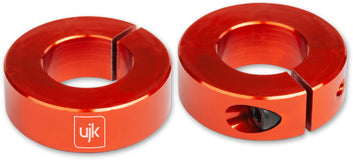 These simple split stop collars add another level of usefulness to your bench dogs. Each collar has a 38mm outer diameter and 20mm inner bore. They slide over your bench dogs forming a temporary hold down. They are particularly useful for instance when biscuit or DOMINO jointing boards. The rear of the board butts up against the bench dogs with split collars preventing the boards from lifting. The split design will not mark or create burrs on the bench dog.