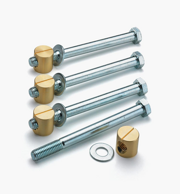 Most European benches use a bolt system to fasten leg sets to stretchers. The main advantage is that you can snug the bolts if anything loosens due to changes in humidity. The solid brass nuts on our bench bolts slide into a pre-drilled hole in the stretcher and distribute pressure to prevent breakout.