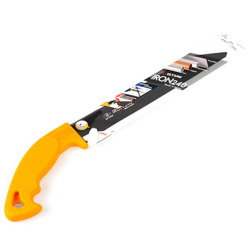 This handy saw features a bi-metal made tough blade with high speed steel ground teeth. It is ideal for cutting ferrous unhardened materials like iron inserted gutters , iron frames and pipes etc. A comfortable rubber "Pistol Grip" holds the replaceable blade, which cuts on the pull stroke in traditional Japanese style.Replacement blades are available, as is a blade designed for cutting copper and alloy material.Specifications:
